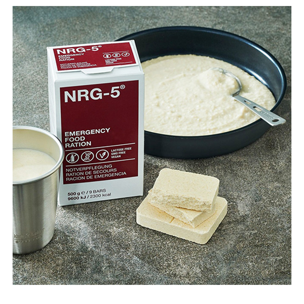 NRG-5 noodrantsoen is hét noodvoedsel om in huis te hebben ter voorbereiding op calamiteiten. NRG5 is lang houdbare noodvoeding dat zich al jarenlang bewezen heeft in rampgebieden en wordt regelmatig verdeeld door de Verenigde Naties en het Rode Kruis. Met 2300 kcal (of 9600 kJ) per pakje van 500 gram, geeft NRG5 je alle benodigde voedingsstoffen, vitaminen en mineralen die je voor 1 á 2 dagen nodig hebt (6 pakken is dus goed voor 12 dagen). Je kunt de NRG-5 direct uit de verpakking eten of er pap van maken. 9 Repen per pak en minimaal 25 jaar houdbaar!